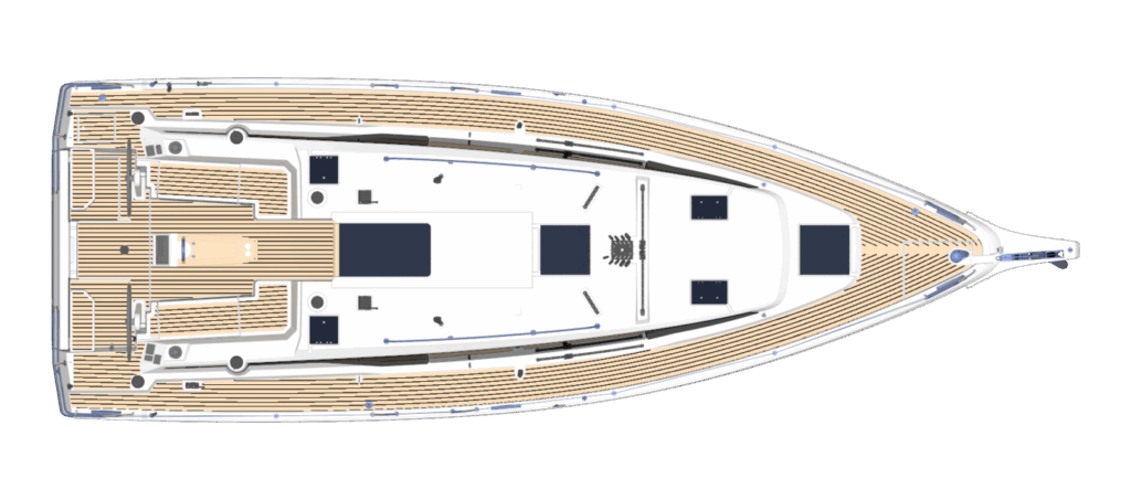 Vorschiff und Seitendecks bieten Ihnen viel Bewegungsfreiheit und dank des innovativen Rumpfdesign eröffnen sich auch unter Deck neue Dimensionen. Zur Wahl stehen individuelle Kabinenlayouts, von der luxuriösen 2-Kabinen-Version mit einem großzügigen Badezimmer bis zur komfortablen 3-Kabinen-Version mit zwei Bädern. Als Eigner können Sie in der Vorschiffskabine in einem echten Kingsizebed träumen – komfortable Stehhöhe und viel Tageslicht inklusive.