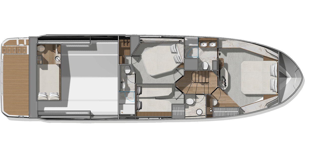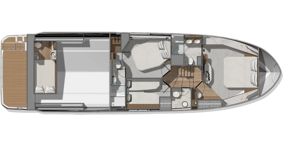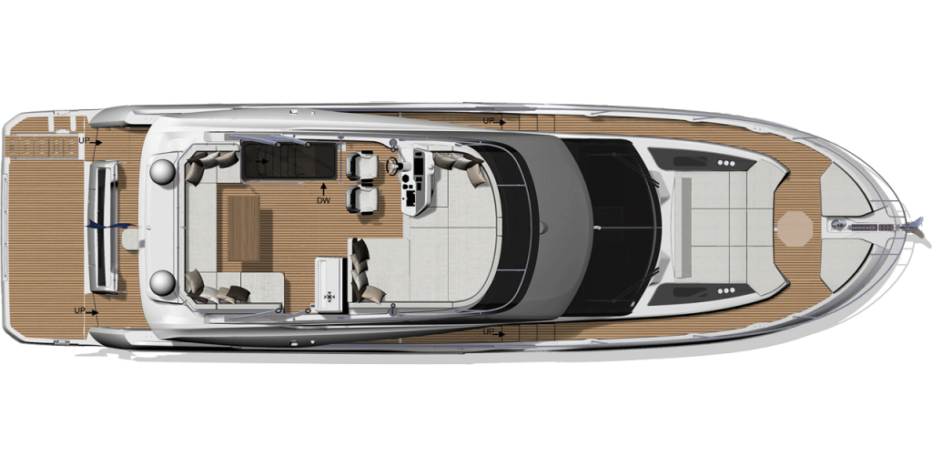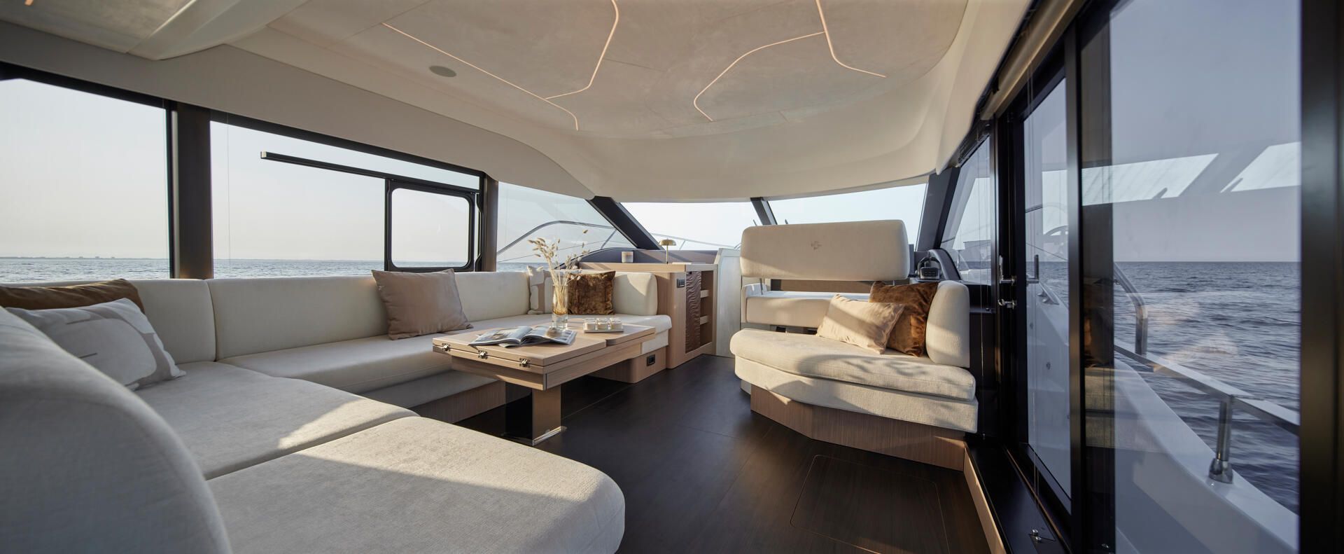 Die neue F5.7 wurde so entworfen, dass sie die Erwartungen und Bedürfnisse der Liebhaber des Wassersports auf höchstem Niveau erfüllt und setzt neue Maßstäbe für das Bordleben. Die vielfältigen Raumkonzepte sind ideal für Momente des gemeinsamen Erlebens mit den Gästen, wobei jeder sein Stück Privatheit genießen kann. Die sanften Linien des Designs und die raffinierte Gestaltung der Ausstattung stehen in direkter Verbindung mit dem Meer und den Elementen. Sie schaffen eine angenehme und beruhigende Atmosphäre.