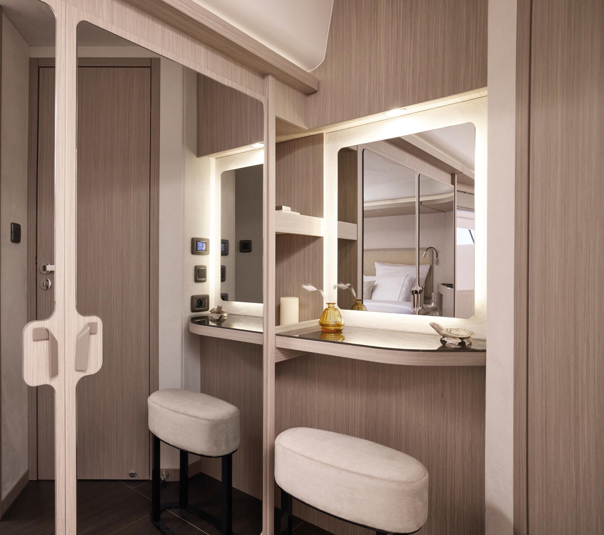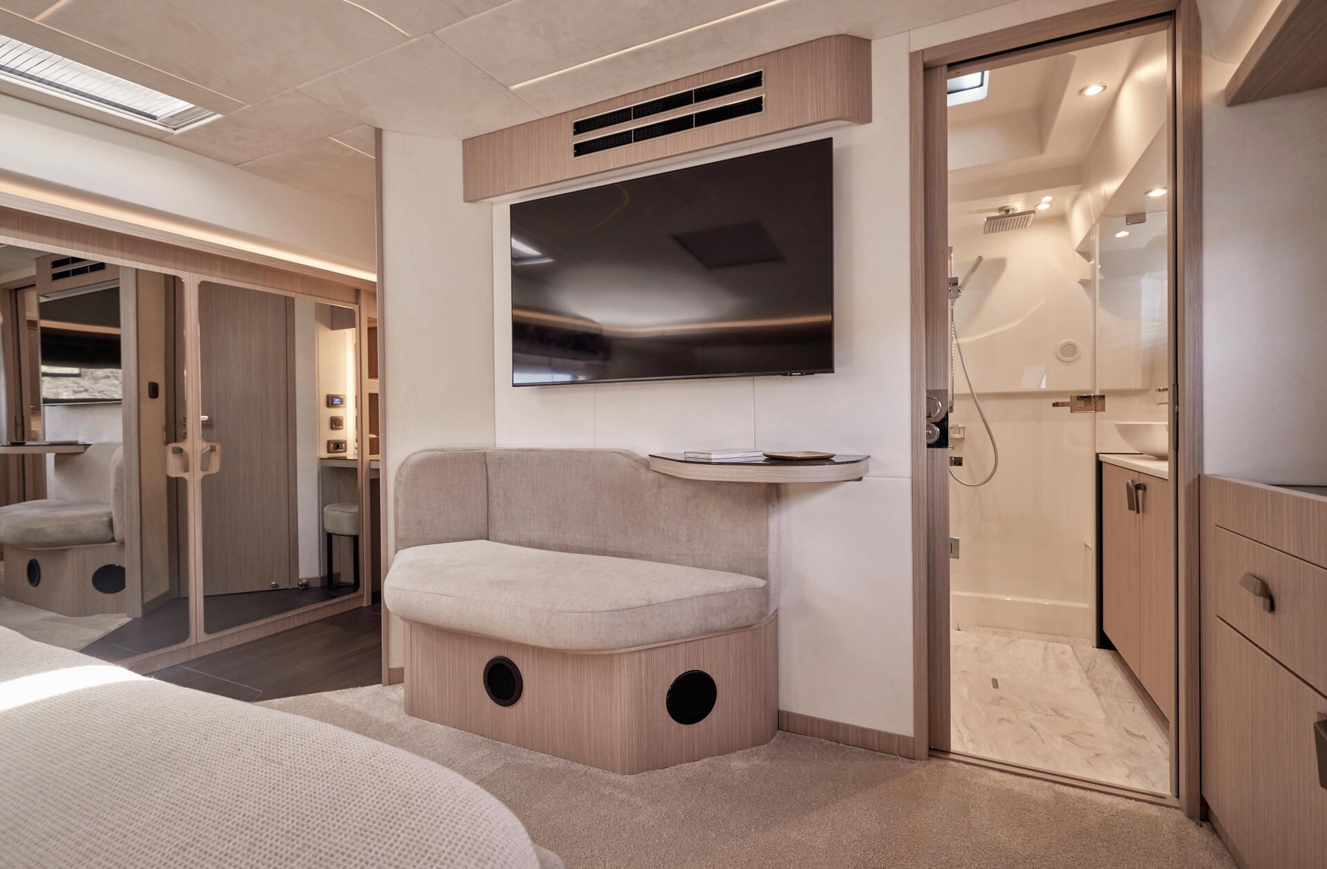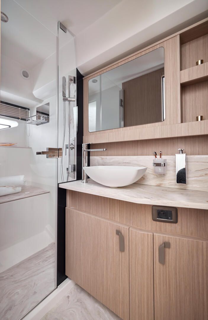 Die neue F5.7 wurde so entworfen, dass sie die Erwartungen und Bedürfnisse der Liebhaber des Wassersports auf höchstem Niveau erfüllt und setzt neue Maßstäbe für das Bordleben. Die vielfältigen Raumkonzepte sind ideal für Momente des gemeinsamen Erlebens mit den Gästen, wobei jeder sein Stück Privatheit genießen kann. Die sanften Linien des Designs und die raffinierte Gestaltung der Ausstattung stehen in direkter Verbindung mit dem Meer und den Elementen. Sie schaffen eine angenehme und beruhigende Atmosphäre.